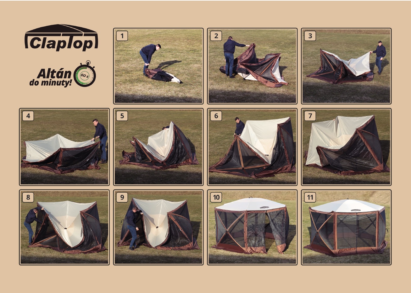 Die Zeltüberdachung ClapTop 600 passt für viele Outdoor-Aktivitäten. Der spezielle HUB-Mechanismus sorgt für einen Express-Aufbau. Veranstalten Sie eine Gartenparty? Innerhalb von 60 Sekunden haben Sie das perfekte Party-Zelt zur Verfügung. Möchten Sie campen? 60 Sekunden, und die Picknick-Überdachung steht. Planen Sie einen Strandtag oder gehen Sie fischen? Wieder nur eine Minute und Sie haben ein schönes Strandzelt. Das Faltzelt ClapTop 600 erfordert keine aufwendige Montage. Es ist sehr stabil und widerstandsfähig gegen mechanische Beschädigungen.